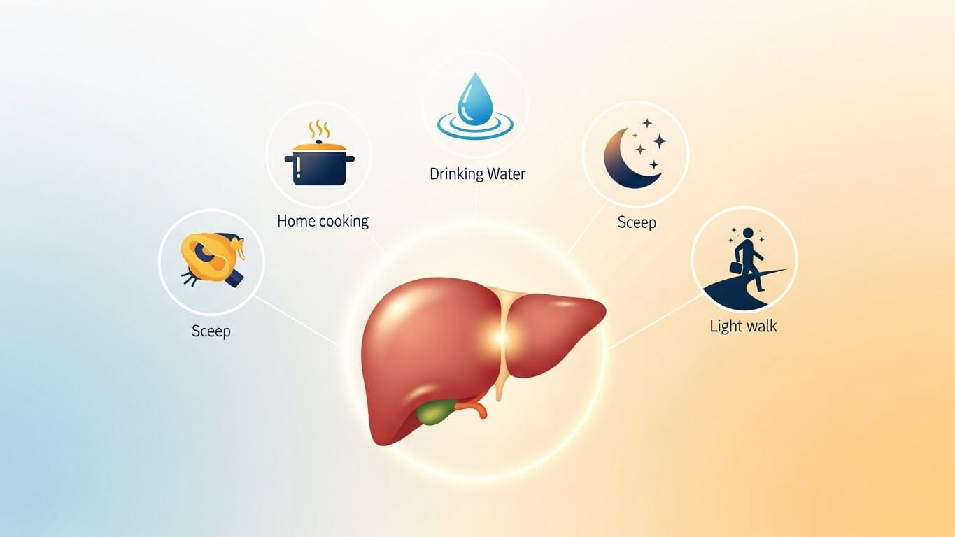 5. 규칙적인 식사 시간 준수: 밤늦은 식사는 간의 회복을 방해합니다. 하루 세 끼를 일정한 시간에 먹는 것이 간 대사를 도와줍니다. 간은 리듬에 맞춰 기능을 수행하는 장기이기 때문에 식사 시간이 불규칙하면 간 효소 활성에 혼란을 줄 수 있습니다. 아침을 거르거나 늦은 밤 간식을 섭취하는 습관은 간의 회복을 방해하며, 간 지방 축적의 원인이 될 수 있습니다.