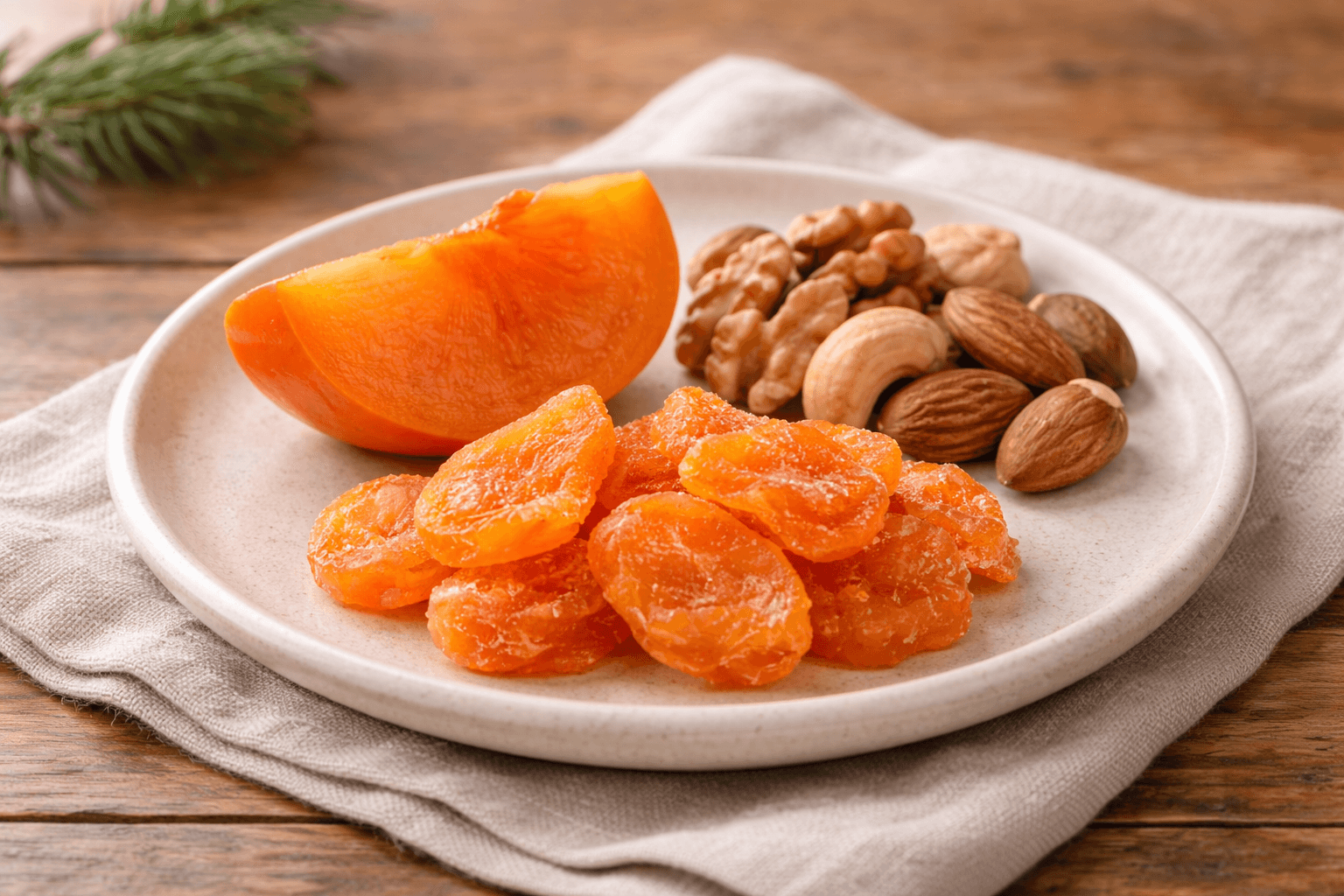 건조 과정은 영양 밀도를 높이는 동시에 칼로리 밀도도 함께 증가시키는 특징이 있다. 곶감은 동일 중량 대비 생감보다 당 함량과 열량이 크게 높아진다. 이로 인해 소량만으로도 높은 에너지를 제공할 수 있으며, 겨울철 활동량이 많은 날에는 효율적인 간식이 될 수 있다. 하지만 무심코 여러 개를 섭취하면 당 섭취 권장량을 쉽게 초과하게 된다. 특히 명절 음식과 함께 곶감을 섭취하는 경우 전체 식사 내 당류 총량을 고려하는 것이 필요하다. 감말랭이는 반건조 특성상 씹는 시간이 길어 포만감 형성에 유리하지만, 씹는 즐거움 때문에 연속 섭취로 이어질 수 있다. 이를 방지하기 위해서는 미리 소분해 정량만 접시에 덜어 먹는 방식이 도움이 된다. 또한 치즈나 견과류와 함께 섭취하면 단맛 대비 만족도가 높아져 과식을 줄일 수 있다. 전통 식품이라는 이유만으로 건강식으로 단정하기보다는, 농축 식품이라는 특성을 이해하고 계획적으로 섭취하는 것이 바람직하다. 결국 곶감과 감말랭이는 일상 과일이라기보다 특별 간식의 개념으로 접근하는 것이 체중과 혈당 관리 측면에서 합리적인 선택이다.