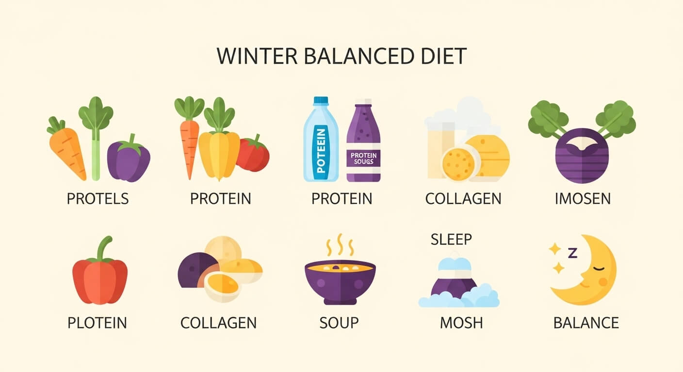 날씨가 추워지는 겨울철은 면역력이 급격히 저하되기 쉬운 계절입니다. 이 시기에는 바이러스와 감염병의 위협이 커지기 때문에 식단을 통해 면역력을 강화하는 것이 무엇보다 중요합니다. 특히 단백질과 콜라겐은 체내 세포 회복과 면역 세포 형성에 필수적인 영양소로, 꾸준한 섭취가 건강 유지에 도움을 줍니다. 또한 피로가 누적되면 면역 체계가 무너지기 쉬우므로, 피로를 회복시켜 주는 음식도 함께 고려해야 합니다. 이번 글에서는 겨울철 건강을 지키기 위한 콜라겐, 단백질, 피로해소에 좋은 음식과 식단 구성을 자세히 소개합니다. 특히 요즘처럼 일교차가 큰 환절기에는 외부 자극에 노출될 기회가 많아 감기, 독감, 코로나19 등 각종 바이러스 질환에 취약해질 수 있습니다. 이럴 때일수록 체내 면역 체계를 튼튼히 하고 회복력을 높이는 식사가 중요한데, 단순히 영양을 공급하는 수준을 넘어서 각 영양소의 기능과 흡수율까지 고려한 식단 구성이 필요합니다. 단백질은 근육량 유지를 통해 기초 대사량을 높이고, 콜라겐은 세포 재생과 염증 완화에 도움을 주며, 피로회복 식품은 활력 회복과 심신 안정에 긍정적인 영향을 줍니다. 올바른 식단은 겨울철 질병을 예방할 뿐 아니라 전반적인 컨디션 유지에도 결정적인 역할을 하므로, 식습관부터 체계적으로 점검해 볼 필요가 있습니다.