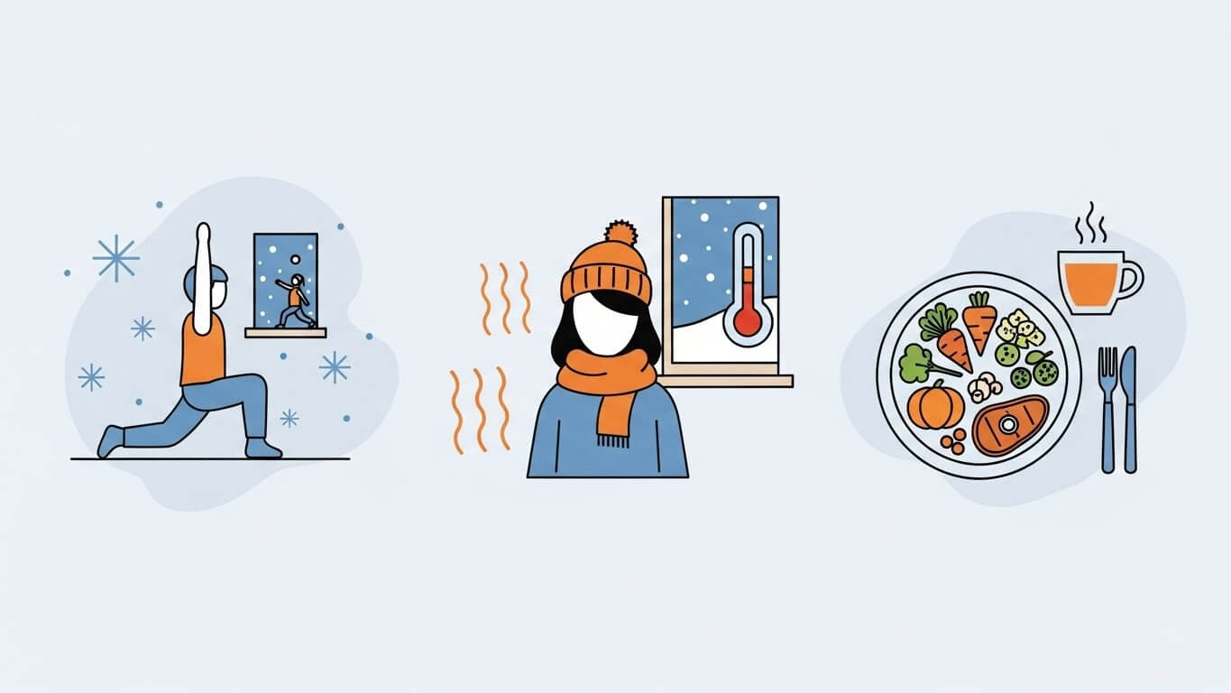 겨울은 체중이 쉽게 늘어나는 계절입니다. 낮은 기온으로 인해 신체 활동량이 줄고, 따뜻하고 칼로리가 높은 음식 섭취가 많아지는 동시에 실내 활동이 많아지면서 비만 위험이 높아집니다. 특히 연말 모임, 송년회 등 외식이 잦아지면 체지방 축적 속도는 더욱 가속화됩니다. 이런 계절적 요인에 대비하려면 겨울철에 적합한 비만 관리 전략이 필요합니다. 이번 글에서는 겨울철 체중 증가를 막고, 오히려 건강한 감량을 유도할 수 있는 세 가지 핵심 전략인 홈트레이닝, 체온 유지, 식단 조절에 대해 구체적으로 안내합니다. 집에서도 충분히 실천 가능한 실용적인 방법을 통해 겨울철에도 균형 잡힌 건강 관리를 시작해 보세요. 추위로 인해 외출이 줄어들고 활동량이 자연스럽게 감소하면서, 신체는 에너지 소비보다 저장을 우선시하게 됩니다. 여기에 면역력을 높인다는 이유로 고지방·고열량 음식을 자주 섭취하게 되면 비만은 더욱 쉽게 진행됩니다. 더불어 햇볕 노출 시간이 짧아져 비타민D가 부족해지고, 이는 체지방 축적과 연관이 있다는 연구도 보고된 바 있습니다. 따라서 겨울철 비만 관리는 단순히 식사량을 줄이는 것이 아닌, 계절 특성을 반영한 체계적인 생활습관 조정이 필요합니다. 이 글에서 다루는 홈트레이닝, 체온 유지, 식단 조절은 각각 독립적으로도 효과가 있지만, 세 가지를 유기적으로 병행할 때 더욱 강력한 시너지 효과를 발휘합니다. 체중 증가로 인해 새해를 무겁게 시작하고 싶지 않다면, 지금부터 작은 실천이 필요합니다.