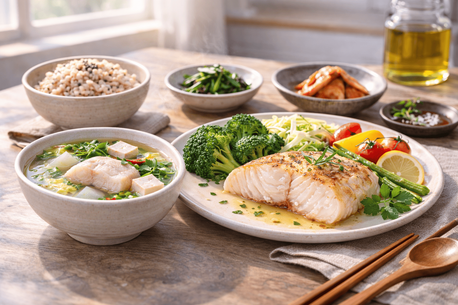 대구는 칼로리가 낮아 체중 관리 식단에 매우 적합하다. 100g당 열량은 약 80~100kcal 수준으로, 같은 단백질 식품군인 육류에 비해 열량 부담이 적다. 특히 포화지방 함량이 낮아 콜레스테롤 관리가 필요한 사람에게 유리하다. 2026년 다이어트 트렌드는 극단적인 저탄수화물 방식보다 균형 잡힌 고단백 식단을 선호하는 방향으로 변화하고 있으며, 대구는 이러한 흐름에 정확히 부합한다. 저칼로리 식단을 구성할 때 중요한 요소는 조리법이다. 튀김보다는 찜, 구이, 맑은탕 방식이 적합하다. 기름 사용을 최소화하면 열량을 크게 낮출 수 있다. 예를 들어 대구찜은 채소를 함께 넣어 수분으로 익히는 방식이기 때문에 기름이 거의 필요 없다. 브로콜리, 양배추, 파프리카 등을 함께 조리하면 식이섬유와 항산화 성분을 동시에 보충할 수 있다. 또한 대구는 포만감 유지에 도움을 준다. 단백질은 소화 과정에서 비교적 긴 시간을 필요로 하기 때문에 공복감을 줄여준다. 이는 간식 섭취를 줄이고 하루 총 열량을 자연스럽게 관리하는 데 도움이 된다. 겨울철 활동량이 줄어 체중이 증가하기 쉬운 시기일수록, 대구처럼 포만감과 저칼로리를 동시에 만족하는 식품 선택이 중요하다. 저염 식단을 실천하는 데에도 대구는 적합하다. 기본 맛이 담백하기 때문에 강한 양념 없이도 충분히 풍미를 낼 수 있다. 레몬즙, 허브, 마늘 등을 활용하면 나트륨 사용을 줄이면서도 맛을 살릴 수 있다. 이는 혈압 관리가 필요한 중장년층에게 특히 실용적인 방법이다. 체중 관리에서 중요한 것은 총열량뿐 아니라 영양 밀도다. 대구는 낮은 칼로리 대비 높은 단백질 함량을 가지고 있어 같은 열량을 섭취하더라도 포만감과 영양 만족도가 높다. 특히 저녁 식사에 대구를 활용하면 과도한 탄수화물 섭취를 줄이는 데 도움이 된다. 흰쌀밥 대신 현미나 잡곡과 소량 곁들이고, 대구를 주단백질로 구성하면 혈당 변동 폭을 완화할 수 있다. 또한 대구는 조리 후에도 지방이 거의 배출되지 않아 팬에 남는 기름이 적다. 이는 자연스럽게 추가 열량 섭취를 줄이는 효과로 이어진다. 다이어트를 장기적으로 유지하려면 지속 가능한 식단이 중요한데, 대구는 맛과 건강을 동시에 충족시키는 현실적인 선택지다.