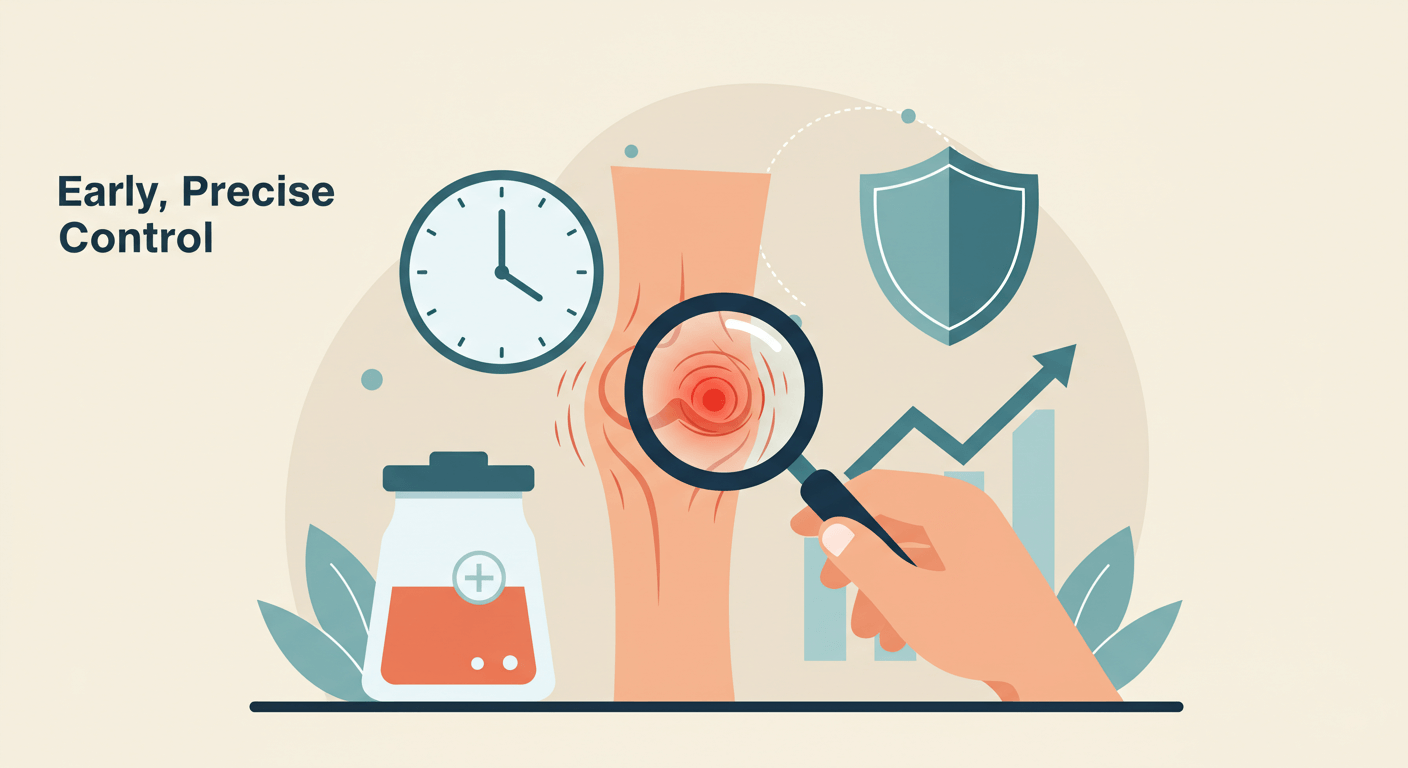 전통적인 치료제인 DMARDs(질병조절 항류마티스 약물) 외에도, 류마티스 관절염 치료는 최근 수년간 눈부신 발전을 이루었습니다. 그 중심에는 생물학적 제제(Biologics)가 있습니다. 생물학 제제는 기존의 광범위한 면역억제제와는 달리, 염증을 유발하는 특정 사이토카인이나 면역세포를 표적으로 삼아 정밀하게 작용합니다. 대표적인 생물학 제제로는 TNF-α 억제제(예: 엔브렐, 휴미라), IL-6 수용체 억제제(예: 악템라), T세포 억제제, B세포 제거제(예: 리툭산) 등이 있습니다. 이들 약물은 주사제 형태로 투여되며, 증상 개선뿐 아니라 관절 손상 예방에 탁월한 효과를 보이고 있습니다. 특히 항CCP 항체 양성이면서 RF가 고수치인 고위험 환자에게는 생물학 제제를 조기에 도입하는 것이 관절 변형을 막는 데 큰 도움이 됩니다. 생물학 제제는 대개 기존 DMARDs에 반응하지 않거나 중등도~중증의 환자에게 사용되며, 최근에는 JAK 억제제와 같은 경구용 표적치료제도 함께 주목받고 있습니다. 이러한 약물들은 투약 간편성과 빠른 반응성을 가지고 있어 치료 옵션을 더욱 넓히고 있습니다. 물론 생물학 제제는 비용, 감염 위험, 투약 방식 등에서 고려해야 할 점이 많습니다. 따라서 의료진과의 충분한 상담과 정기적인 혈액 검사, 영상 촬영 등을 병행하며 안전하게 관리해야 합니다. 건강보험 적용 여부나 본인의 건강 상태를 정확히 파악한 후, 가장 적절한 제제를 선택하는 것이 무엇보다 중요합니다. 생물학 제제 치료는 단순히 약물을 투여하는 것에 그치지 않고, 환자 교육과 생활 습관 개선이 함께 병행될 때 더 큰 효과를 발휘합니다. 특히 최근 도입된 자가주사형 생물학 제제는 환자가 집에서도 안전하게 투약할 수 있도록 고안되어 치료의 지속성과 편의성을 높였습니다. 예를 들어 휴미라, 엔브렐과 같은 약제는 정기적인 병원 방문이 어렵거나 지방 거주 환자에게 큰 도움이 됩니다. 또한 생물학 제제 치료 전 감염 예방 백신 접종(폐렴, 대상포진 등)을 완료하고, 주기적으로 간·신장 기능을 확인하는 것이 권장됩니다. 감염 위험을 줄이고 약물 부작용을 최소화하기 위한 사전 준비가 필수적이기 때문입니다. 최근에는 JAK 억제제처럼 경구용 표적 치료제도 함께 활용되어 주사 공포가 있는 환자에게 대안이 되고 있습니다. 이러한 치료 전략은 단순한 증상 완화를 넘어, 관절 파괴를 예방하고 질병을 ‘관해(remission)’ 상태로 만드는 데 목표를 두고 있습니다. 이를 통해 과거 불치병으로 여겨졌던 류마티스 관절염도 충분히 관리 가능한 질환으로 변화하고 있습니다.