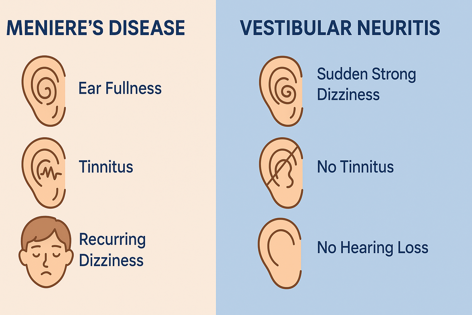 갑작스럽게 세상이 빙글빙글 도는 듯한 어지럼증을 경험해 본 적이 있으신가요? 특히 중장년층 이상의 연령대에서 갑작스러운 회전성 어지럼을 겪을 경우 많은 사람들이 뇌졸중을 의심하곤 합니다. 하지만 실제로는 귀 속 균형기관의 문제로 인해 발생하는 경우가 많습니다. 대표적인 질환으로는 메니에르병과 전정신경염이 있습니다. 두 질환 모두 극심한 어지럼증을 유발하지만, 그 원인과 동반 증상, 치료 방식은 전혀 다릅니다. 이번 글에서는 어지럼증, 귀 먹먹함, 이명 증상을 중심으로 메니에르병과 전정신경염의 차이점을 정말 정리해 드립니다.