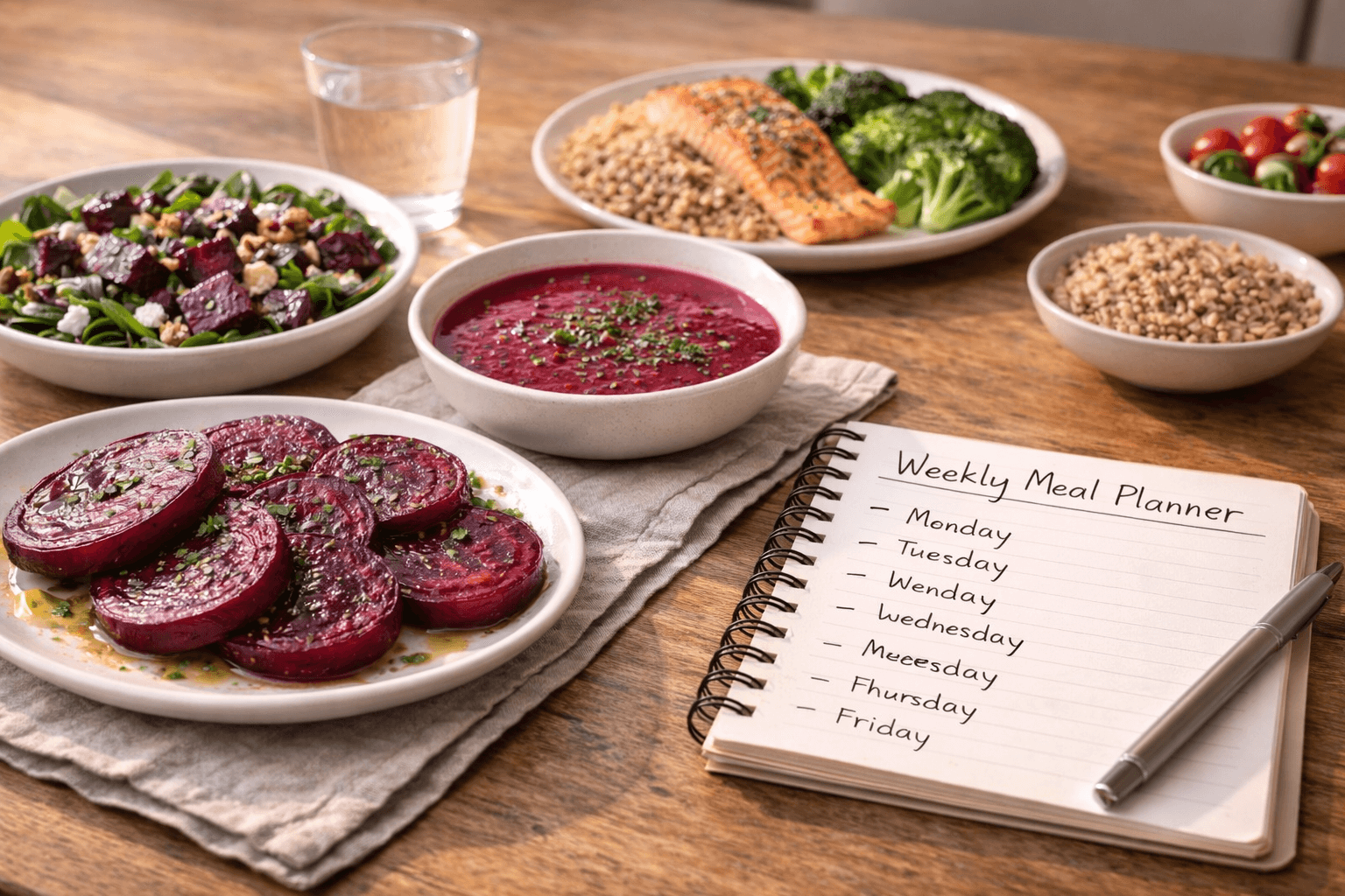 결론적으로 비트 영양분석의 핵심은 질산염, 베타인, 베타레인이라는 세 가지 주요 성분의 상호 보완적 특성에 있습니다. 혈관 건강, 대사 균형, 산화 스트레스 관리라는 영역에서 의미 있는 역할을 할 수 있으나, 이는 어디까지나 균형 잡힌 식단과 건강한 생활 습관을 전제로 합니다. 비트를 주 2~4회 식단에 포함시키는 실천은 영양 밀도를 높이는 현실적인 전략이 될 수 있습니다. 비트 영양분석의 핵심은 세 가지 주요 성분이 서로 다른 생리적 경로에 관여한다는 점입니다. 질산염은 혈류 조절과 관련된 대사 경로에, 베타인은 메틸화와 호모시스테인 대사에, 베타레인은 항산화 작용과 관련된 경로에 연결됩니다. 그러나 이 모든 작용은 단일 식품만으로 완성되지 않습니다. 충분한 채소 섭취, 통곡물과 단백질의 균형, 과도한 나트륨과 가공식품 제한, 규칙적인 신체 활동이 함께 이루어질 때 의미 있는 변화가 나타납니다. 또한 개인의 건강 상태와 복용 중인 약물에 따라 섭취 전략은 달라질 수 있으므로, 필요 시 전문가 상담이 바람직합니다. 비트는 저칼로리이면서도 다양한 생리활성 성분을 포함한 채소로서 식단의 영양 밀도를 높이는 데 기여할 수 있습니다. 주 2~4회 샐러드, 구이, 수프 등으로 활용하면 무리 없이 식단에 포함시킬 수 있습니다. 중요한 것은 특정 성분에 대한 기대감이 아니라, 지속 가능한 식사 구조를 만드는 것입니다. 비트는 그 구조를 보완하는 하나의 재료이며, 균형 잡힌 생활 습관 속에서 그 가치가 더욱 분명해집니다.