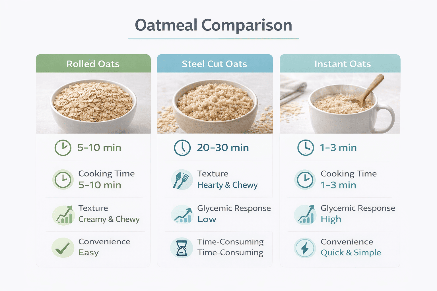 오트밀은 건강식으로 널리 알려져 있지만, 종류에 따라 영양 구성과 조리 방식, 체내 영향까지 차이가 있다는 점은 잘 알려져 있지 않다. 특히 2026년 현재 다양한 식단 트렌드와 맞물려 오트밀 제품이 세분화되면서 롤드오트, 스틸컷 오트, 인스턴트 오트밀의 차이를 정확히 이해하는 것이 중요해졌다. 같은 귀리에서 시작된 식품이지만 가공 방식에 따라 식감, 조리 시간, 혈당 반응, 포만감까지 달라진다. 따라서 자신의 목적에 맞는 오트밀을 선택하는 것이 건강 관리와 식단 효율을 높이는 핵심이다. 이번 글에서는 대표적인 세 가지 오트밀 종류를 중심으로 영양, 활용도, 특징을 비교 분석하여 올바른 선택 기준을 제시한다.