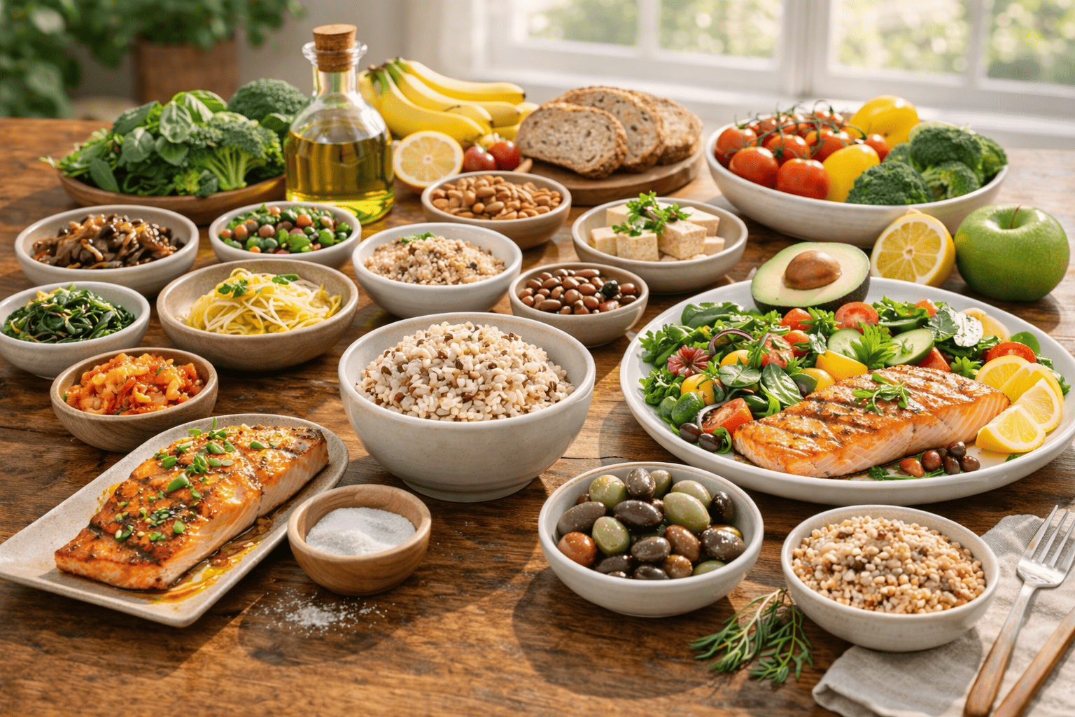 지중해 식단은 세계적으로 건강 식단의 대표적인 모델로 알려져 있으며 심혈관 질환 예방 효과가 많은 연구에서 보고된 식단이다. 이 식단은 그리스, 이탈리아, 스페인 등 지중해 연안 국가의 전통 식습관에서 유래했다. 주요 특징은 채소, 과일, 통곡물, 견과류, 생선, 올리브오일 중심의 식단 구성이다. 지중해 식단의 가장 큰 특징은 건강한 지방을 적극적으로 활용한다는 점이다. 올리브오일은 단일불포화지방산이 풍부하여 혈관 염증을 줄이고 콜레스테롤 균형을 유지하는 데 도움을 줄 수 있다. 이러한 지방은 포화지방이 많은 식품을 대체할 수 있어 심혈관 건강에 긍정적인 영향을 준다. 또한 생선 섭취가 많은 것도 중요한 특징이다. 연어, 고등어, 정어리 같은 등푸른 생선에는 오메가3 지방산이 풍부하게 포함되어 있어 혈관 건강을 유지하고 혈액 순환을 개선하는 데 도움을 줄 수 있다. 이러한 영양소는 혈압 안정과 심혈관 질환 예방에 긍정적인 영향을 줄 수 있는 것으로 알려져 있다. 지중해 식단은 채소와 과일 섭취량도 매우 높은 편이다. 이러한 식품에는 항산화 성분과 식이섬유가 풍부하여 혈관 손상을 줄이고 혈압 조절에 도움을 줄 수 있다. 특히 다양한 색상의 채소와 과일을 섭취하는 것이 중요한 특징이다. 이처럼 지중해 식단은 건강한 지방과 풍부한 식물성 식품을 중심으로 구성되어 있어 혈압 관리뿐 아니라 전반적인 심혈관 건강 유지에 매우 효과적인 식단으로 평가된다. 지중해 식단의 또 하나의 특징은 식사 문화 자체가 비교적 천천히 이루어진다는 점이다. 식사를 서두르기보다 여유 있게 즐기는 식습관은 과식을 예방하고 소화 과정에도 긍정적인 영향을 줄 수 있다. 또한 이 식단에서는 신선한 재료를 활용한 요리가 중심이 되기 때문에 가공식품 섭취가 상대적으로 적은 편이다. 가공식품에는 나트륨과 포화지방이 많이 포함되는 경우가 많기 때문에 이러한 식습관은 자연스럽게 혈압 관리에 도움을 줄 수 있다. 더불어 지중해 지역에서는 식사와 함께 가벼운 신체 활동이나 야외 활동이 생활 속에 자연스럽게 포함되는 경우가 많아 전반적인 생활 방식 자체가 심혈관 건강에 긍정적인 영향을 미치는 것으로 평가된다.